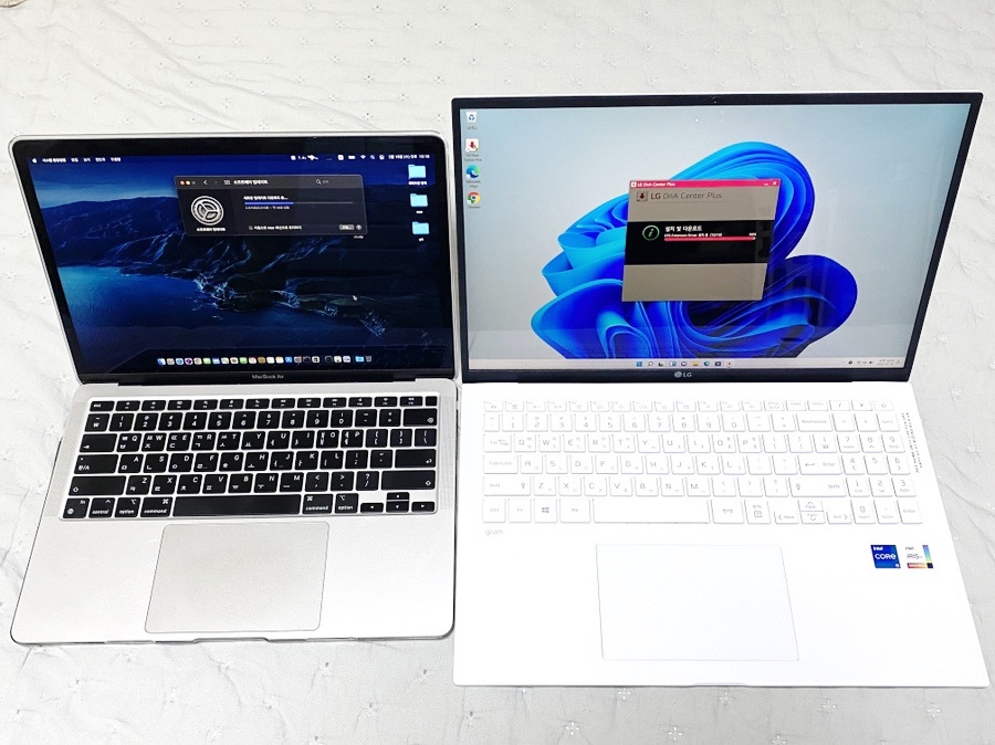 제가 구입한 맥북 에어와 그램 16을 기준으로 비교하겠습니다.