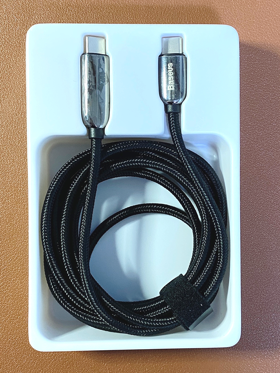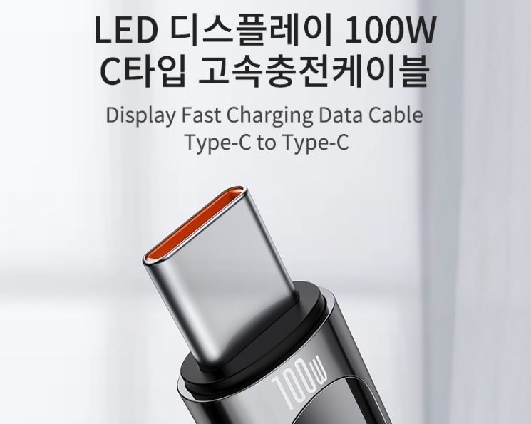 베이스어스 led 100W 케이블은 C타입으로 최대 100W 충전을 지원하고 LED로 현재 전원공급상태를 확인할 수 있습니다.
