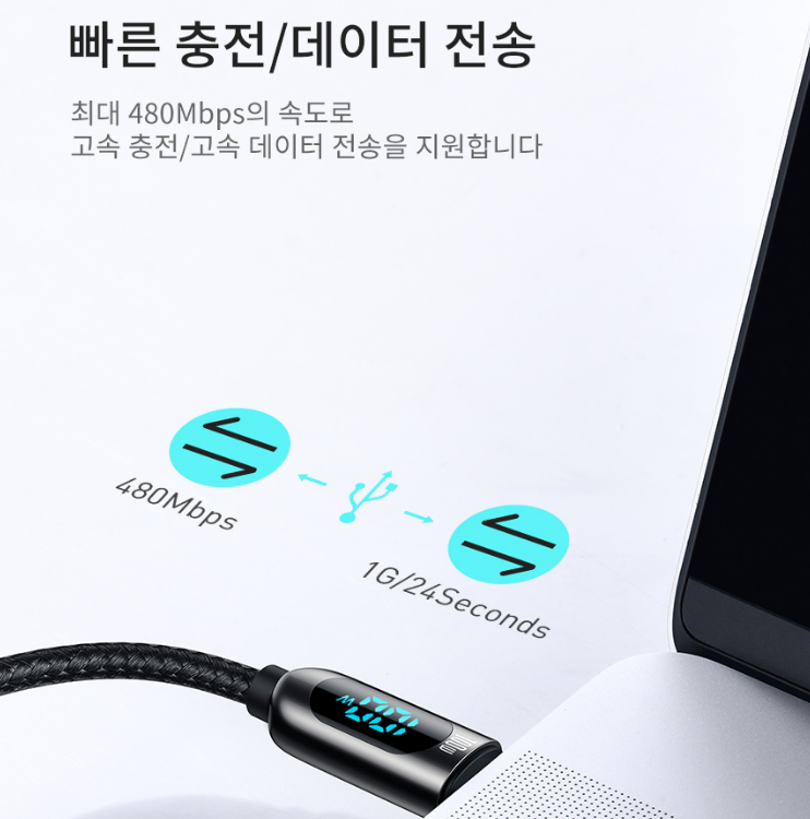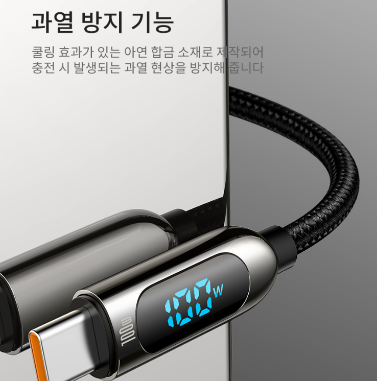 [베이스어스] LED 디스플레이 100W 고속충전 데이터 케이블 1M [옵션 선택]|[블랙]