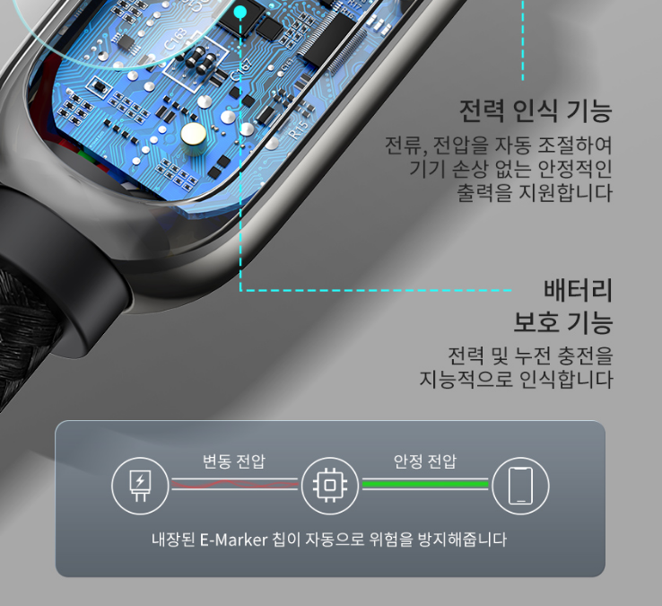 따라서 고속으로 안정적인 전원을 공급해주는 케이블 선택이 중요합니다.