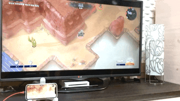 아이폰 화면을 티비로 미러링하고 엑박 콘트롤러로 게임하는 모습입니다.