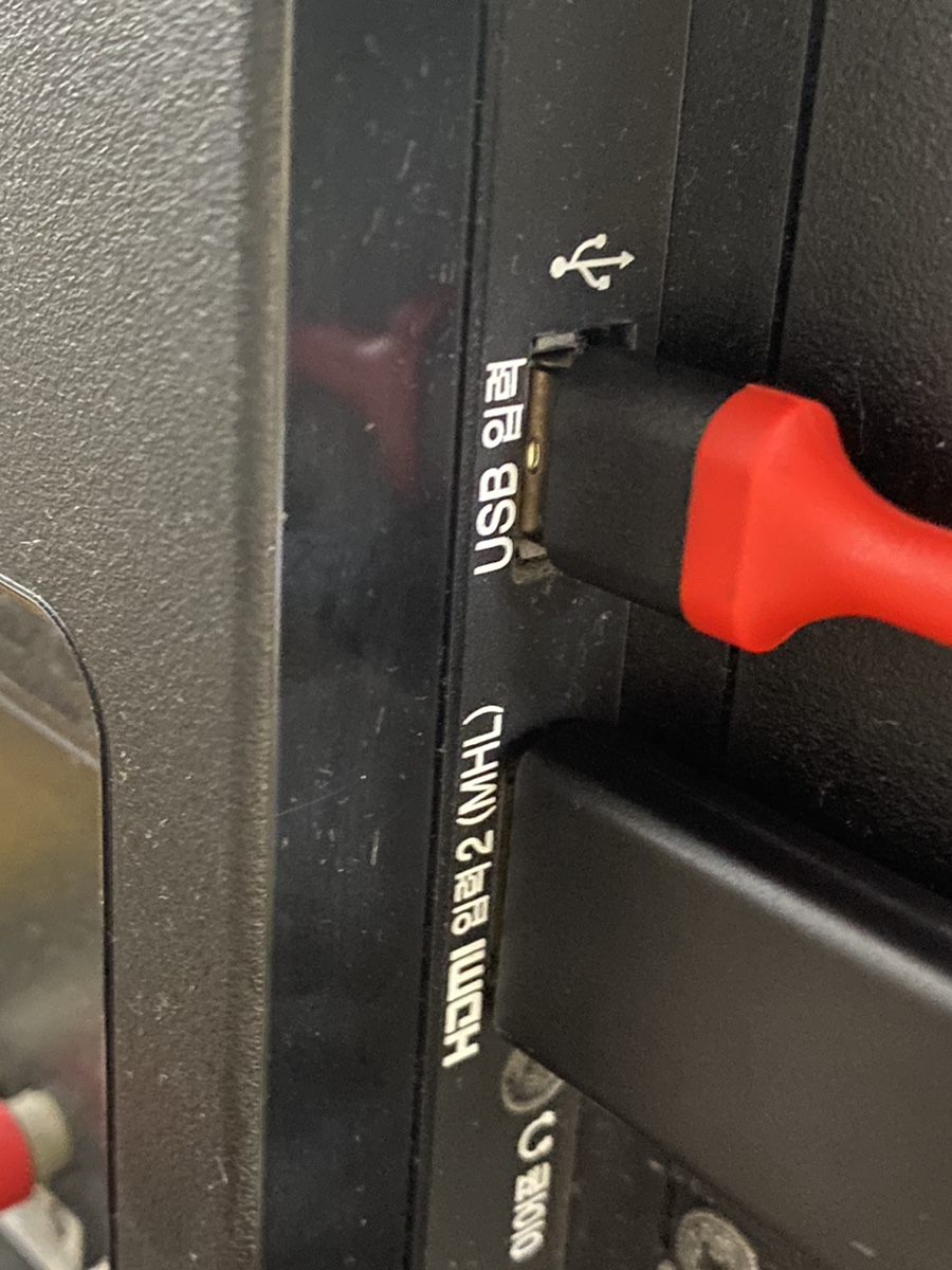 케이블 구입 후 tv에 연결하고 usb 는 tv에 있는 usb 단자에 연결하였습니다.