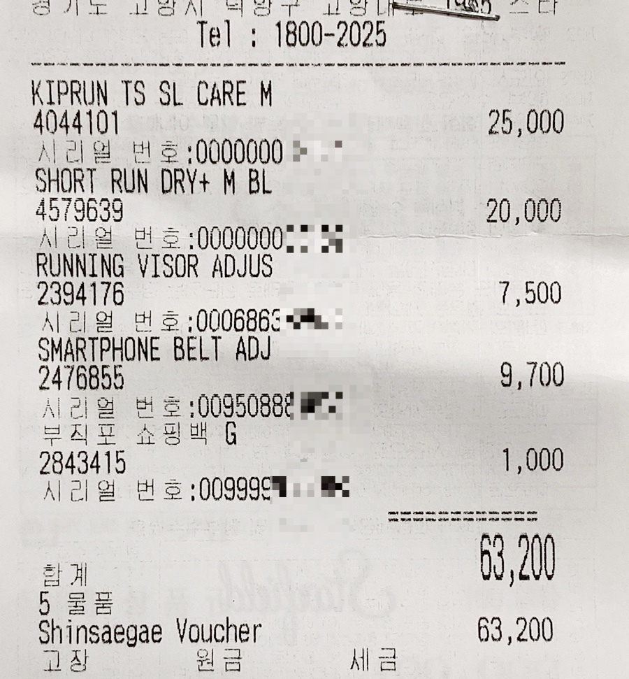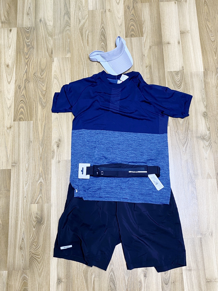반팔 티셔츠, 반바지, 썬캡, 허리 색, 쇼핑백 5개를 구입했습니다.