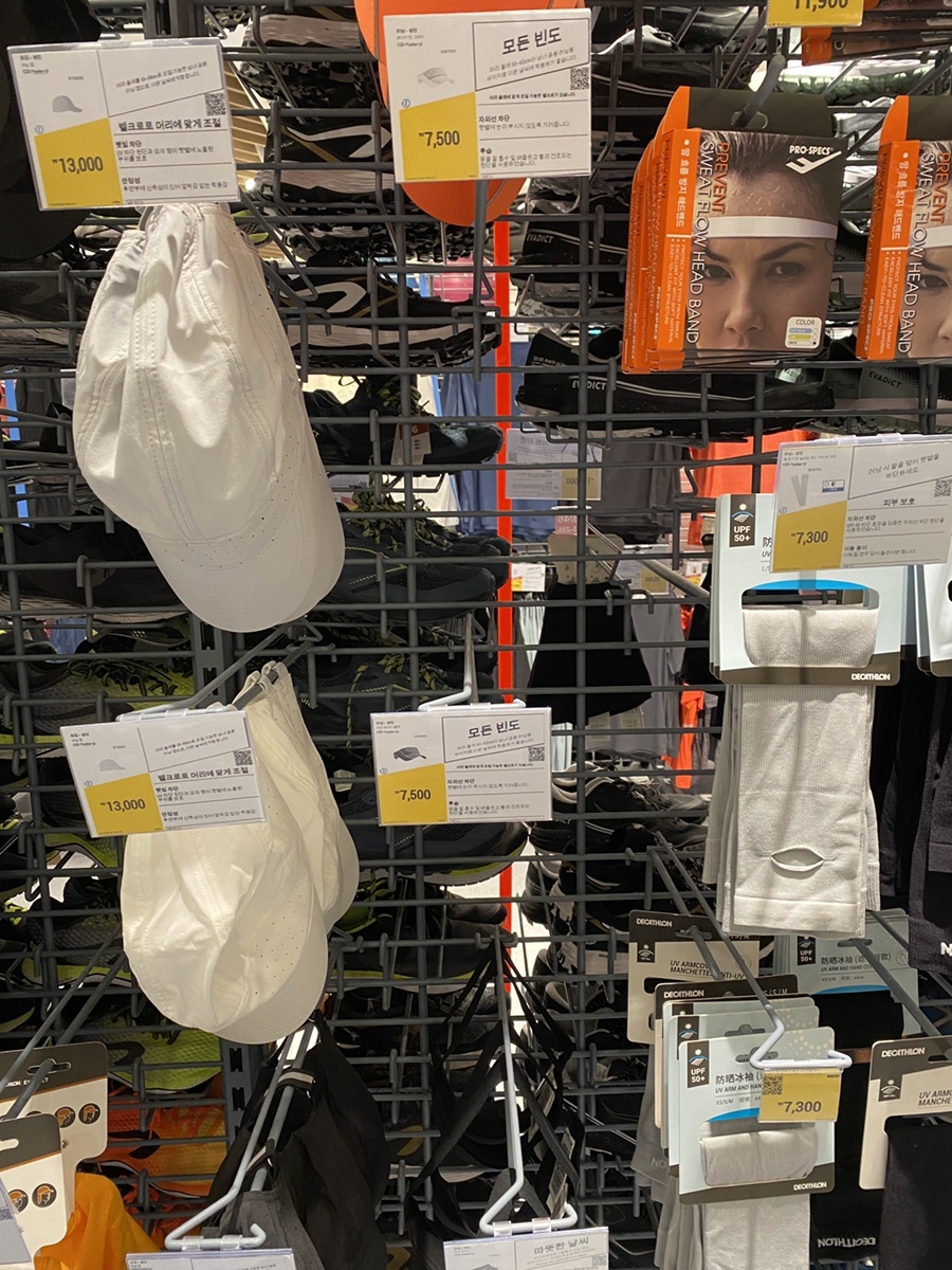 악세사리 코너에서 허리쌕과 선캡을 구매했는데, 인기 제품은 품절이네요.