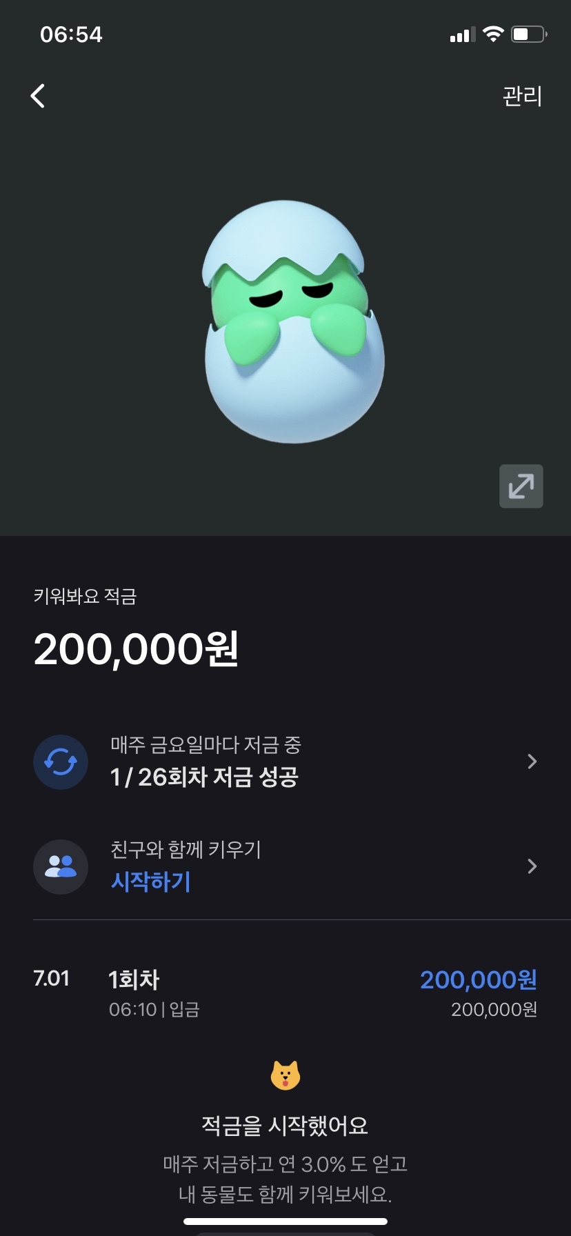 토스에서 출시한 키워봐요 적금은 기본 1% 금리에 26주(6개월) 동안 자동이체 챌린지를 성공하면 2%를 더해 3%를 주는 적금 상품입니다.