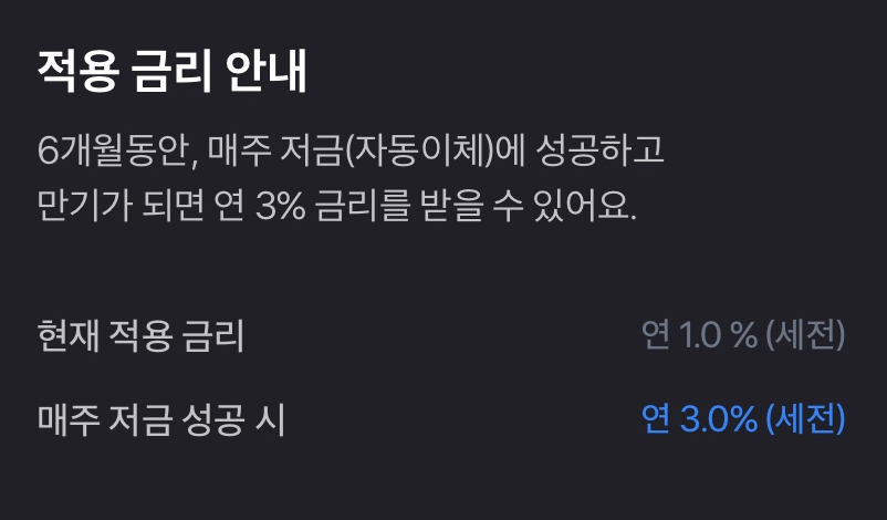 주의사항은 추가저금으로 인해 100만원이 초과되어 자동이체가 실패한다면 3% 이자를 못받을 수 있어요.