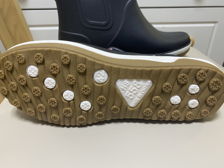 바닥에는 미끄럼 방지 처리가 되어있어 미끄러운 환경에서도 안전하게 신을 수 있을 것 같습니다.