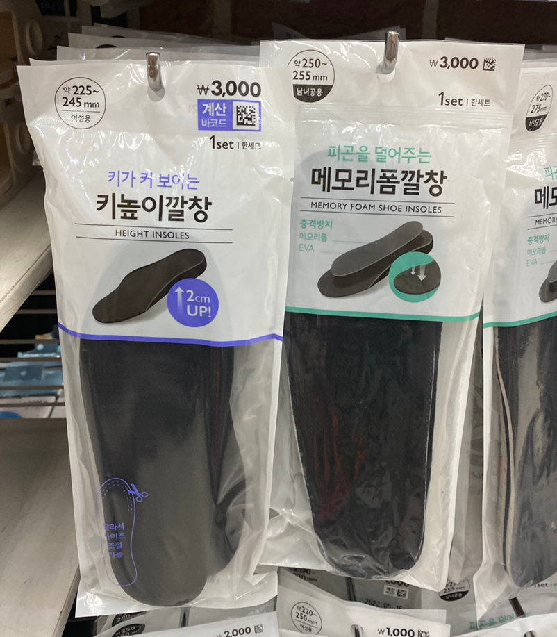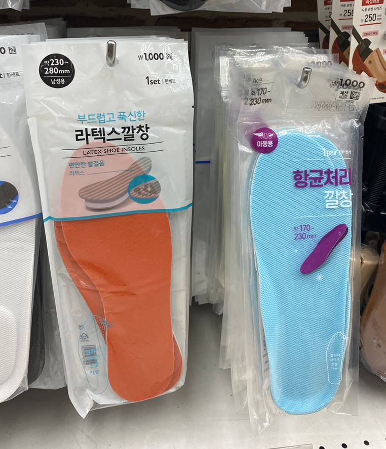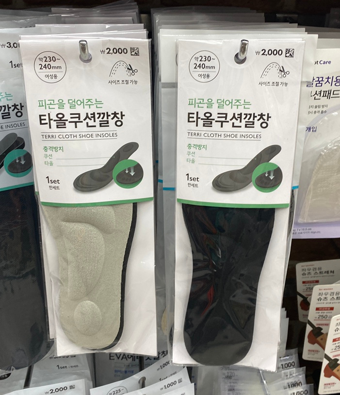 깔창이 낡아서 교체하시려는 분이나 쿠션감을 더하고 싶은 분은 다이소에 방문해 보세요.