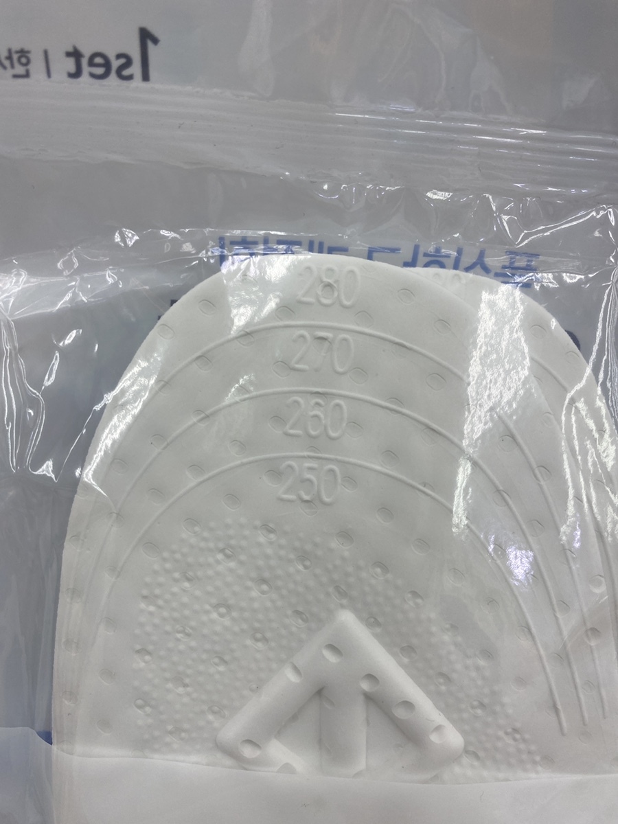 뒷면에 깔창 사이즈 표시가 없고 포장지에 사이즈가 표시된 경우도 있는데, 포장지에 맞춰서 잘라주셔야 해요.