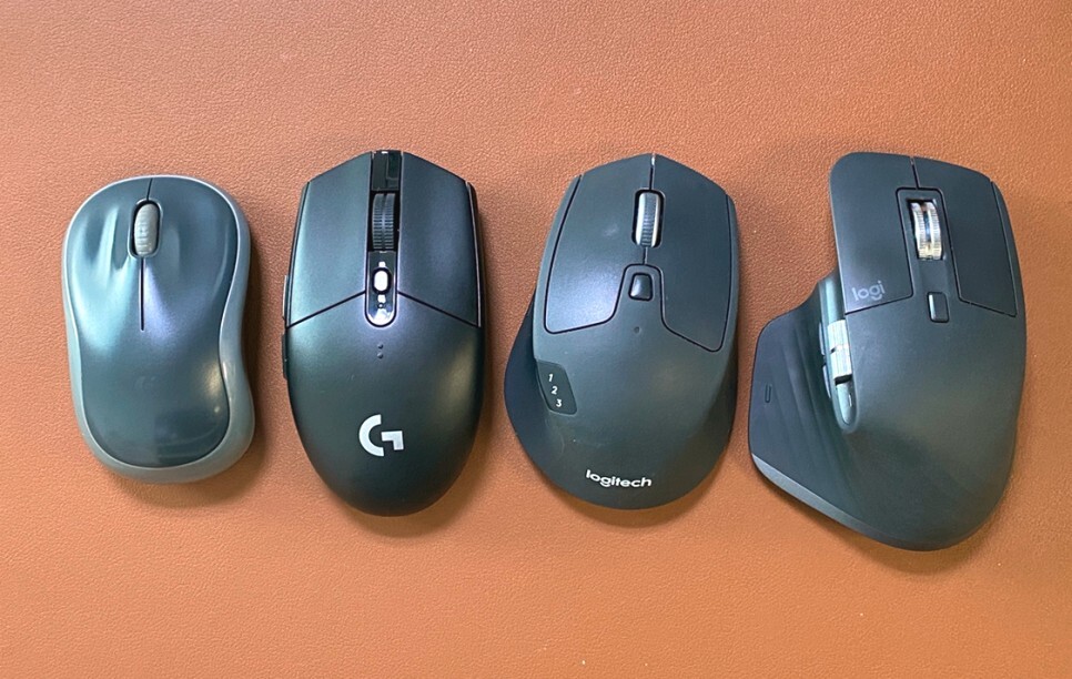 보유하고 있는 로지텍 마우스 4종과 크기 비교를 해 보았습니다.