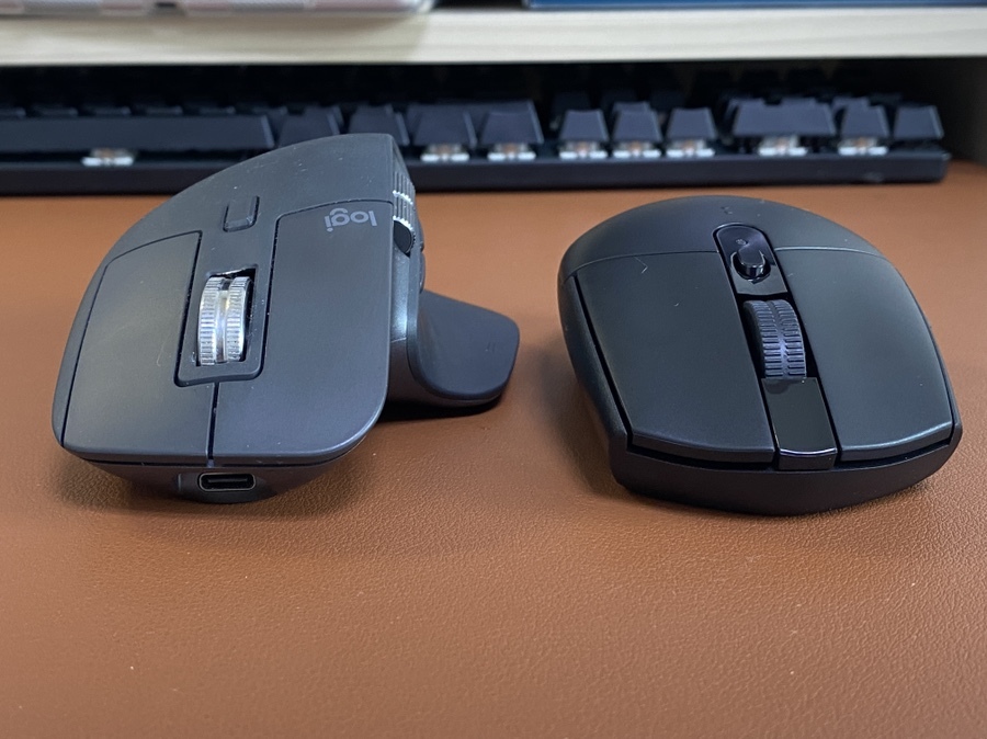 다른 마우스와 비교해보면 비교적 가벼운 M720의 클릭감과 MX master3 중간 정도의 느낌입니다.