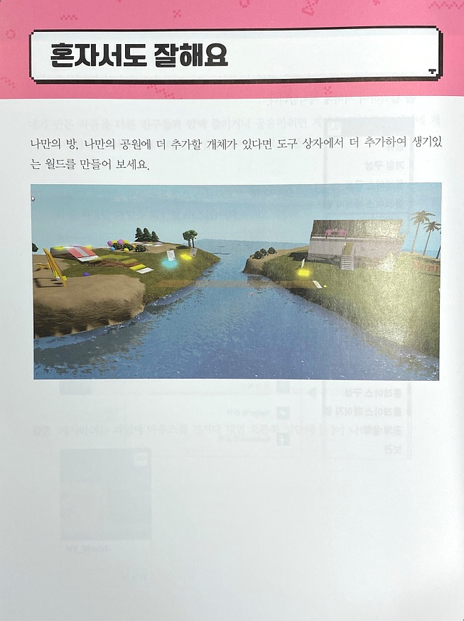 작은 방부터 공원과 놀이터를 만들어 보고 최종 단계에서는 가상 세계를 만들게 됩니다.
