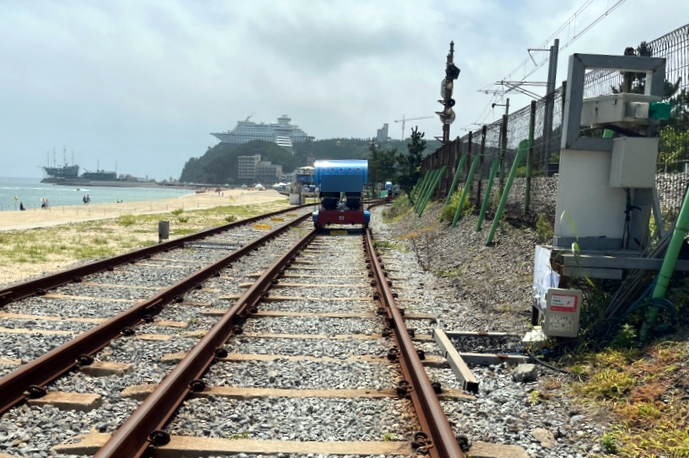 정동진 레일바이크는 전동운행이라 남녀 노소 편하게 달릴 수 있습니다. 레일바이크 옆에 펼쳐진 동해 바다를 배경으로 추억을 만들어 보세요.