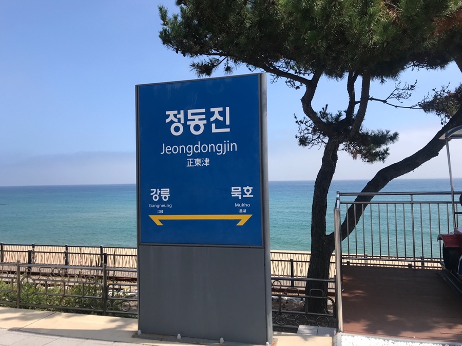 이동 코스는 정동진역 탑승장에서 출발하여 모래시계 공원을 돌아 해단 길을 따라 이동하게 됩니다.