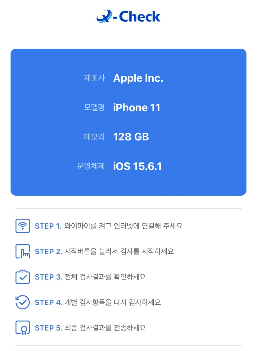 Q-Check 앱을 실행하면 순차적으로 총 17개 기능을 테스트하게 되는데요