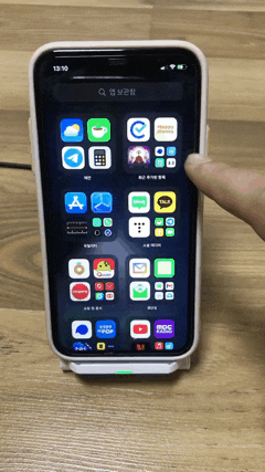 아이폰 13 케이스가 장착된 상태로 올리니 바로 충전되고 크기도 딱 맞습니다.
