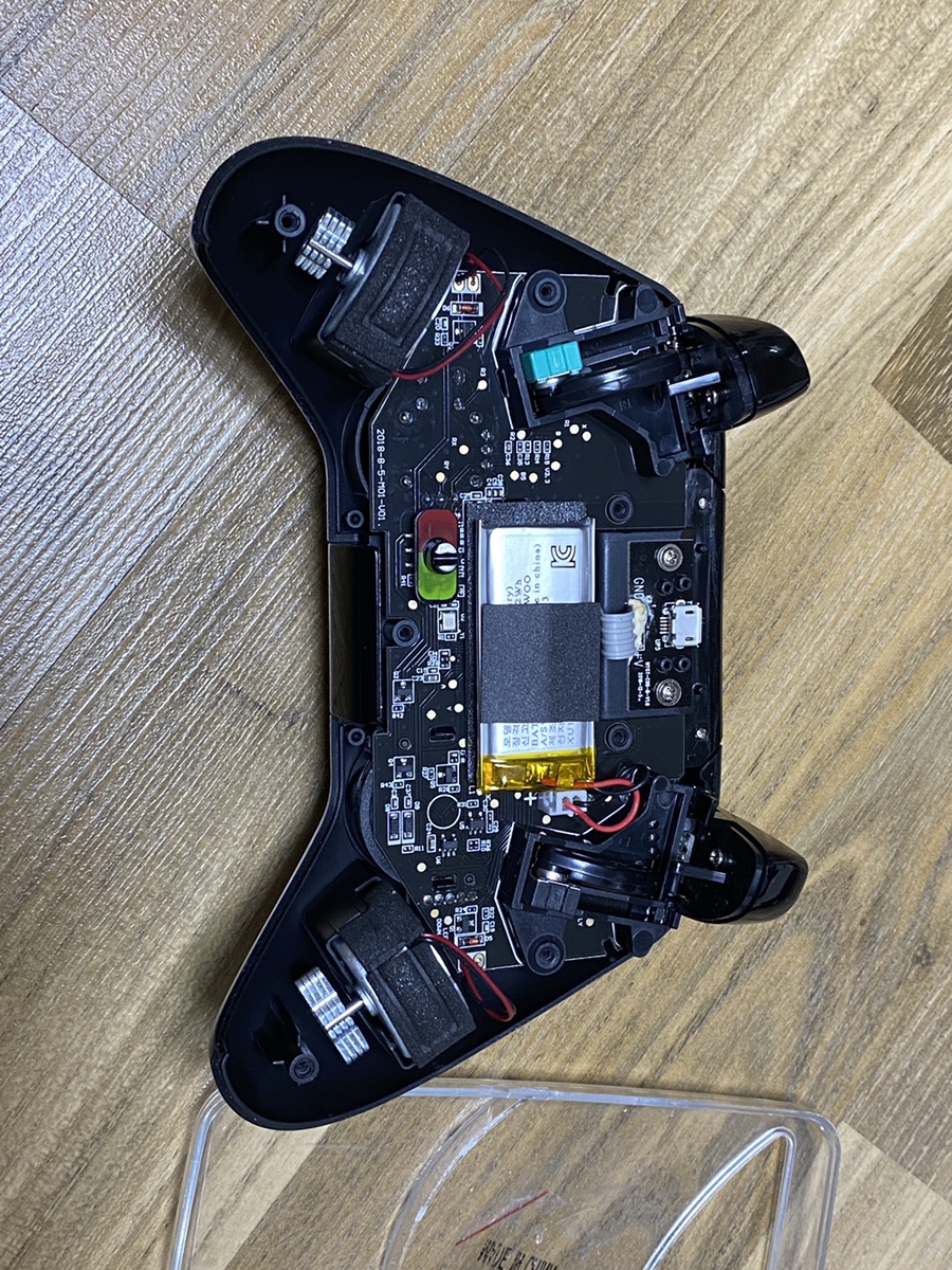 게임 콘트롤러(조이트론 안디오스) 를 몇 번 떨어트린 후 왼쪽 트리거 버튼이 동작하지 않아 자가 수리를 시도해 봤습니다.
