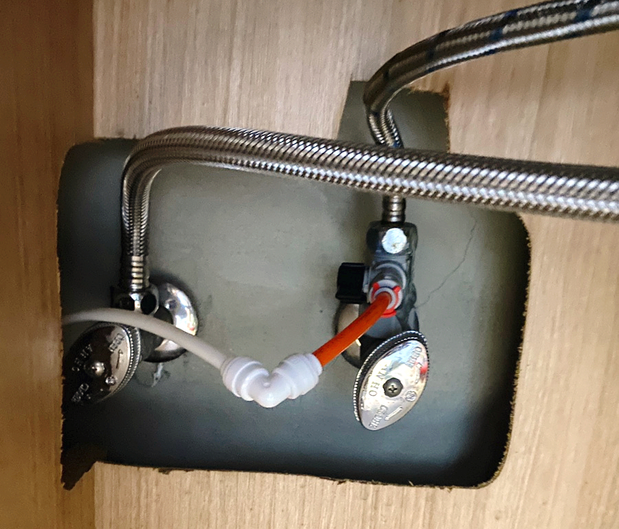 먼저 싱크대 밑에 수전으로 연결된 물을 모두 잠궈 줍니다.