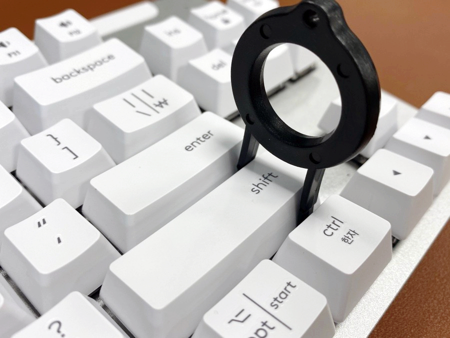 일반 키들은 철사처럼 된 키캡 리무버로 빼는 것이 편하고, 시프트, 스페이스바 처럼 긴 키들은 고리형과 같은 키캡 리무버로 한쪽씩 차례로 빼는 것이 편합니다.