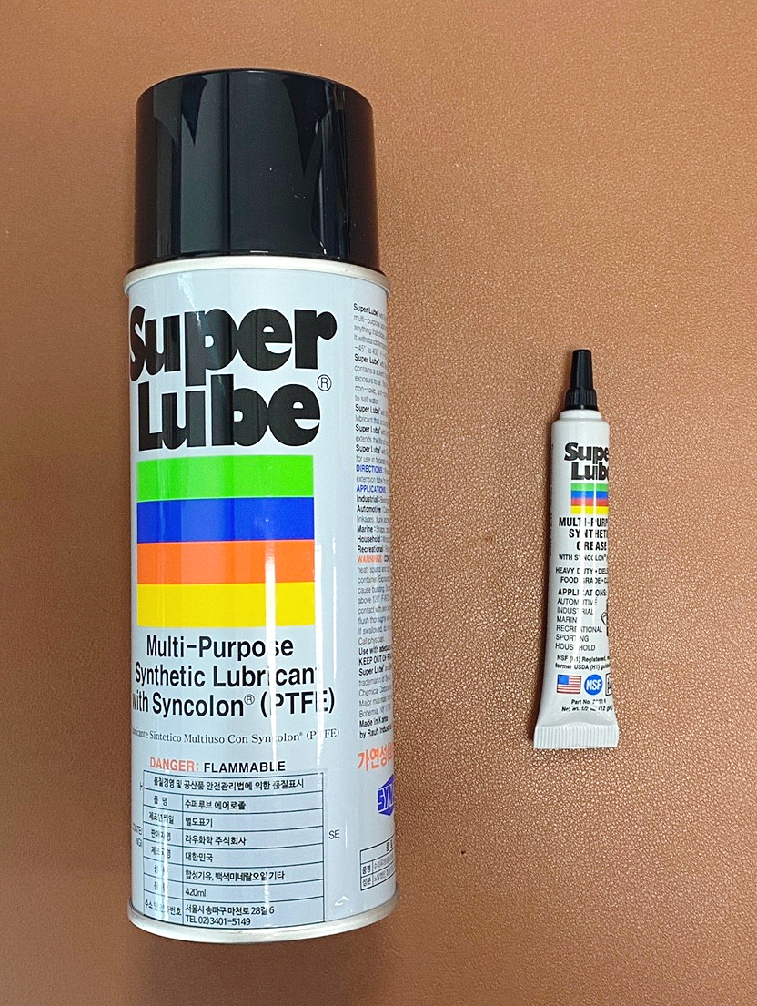 키 축에 뿌릴 스프레이형과 쇠에 바를 튜브형 2종류의 수퍼루브(Super Lube) 구리스를 구입했습니다.