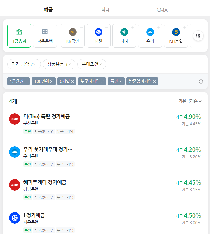 특판 상품의 경우 높은 금리 상품이 있는데 조건부로 제공하는 서비스인 경우가 많기 때문에 반드시 확인이 필요합니다.