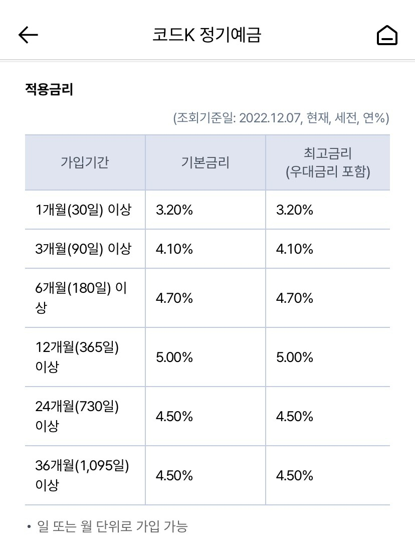 12/7일 기준 6개월 예금 금리를 확인해 보니 아래 사진과 같습니다.