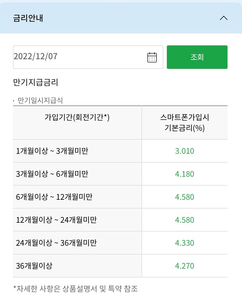 예금이나 적금을 가입하시기 전에 전국 은행 연합회 소비자포털 홈페이지나 네이버페이 금리 비교 서비스에서 금리 비교하시고 좋은 금리로 가입하시기 바랍니다.