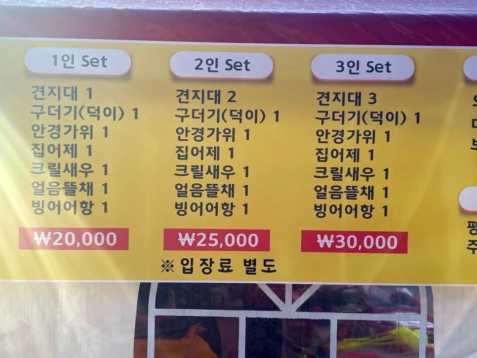 낚시대가 없다면 현장에서 구입이 가능한데요. 세트로 구입하는 것이 저렴합니다.