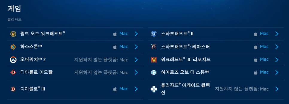 블리자드, 스팀 등에서 맥을 지원하고 있지만 아직 3D 게임은 지원이 부족한 현실입니다.