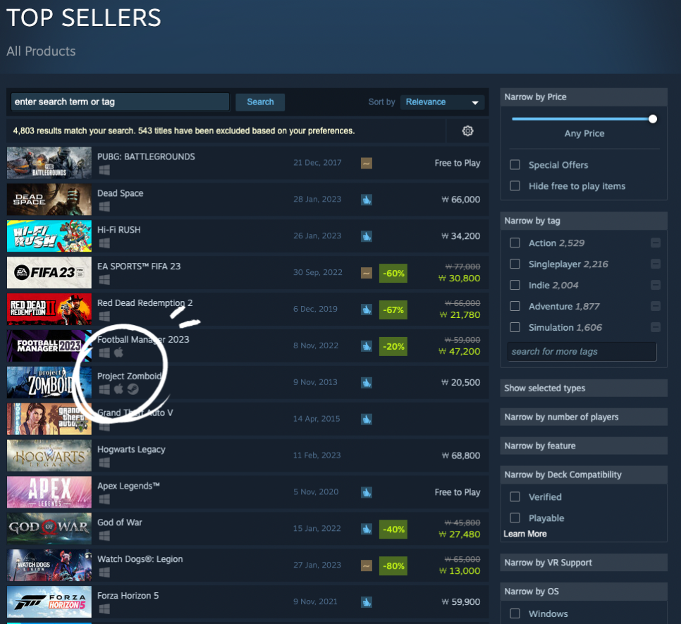 스팀에서 게임 목록에 지원하는 플랫폼 표시가 되는데 맥은 아직 지원하지 않는 게임이 많네요.