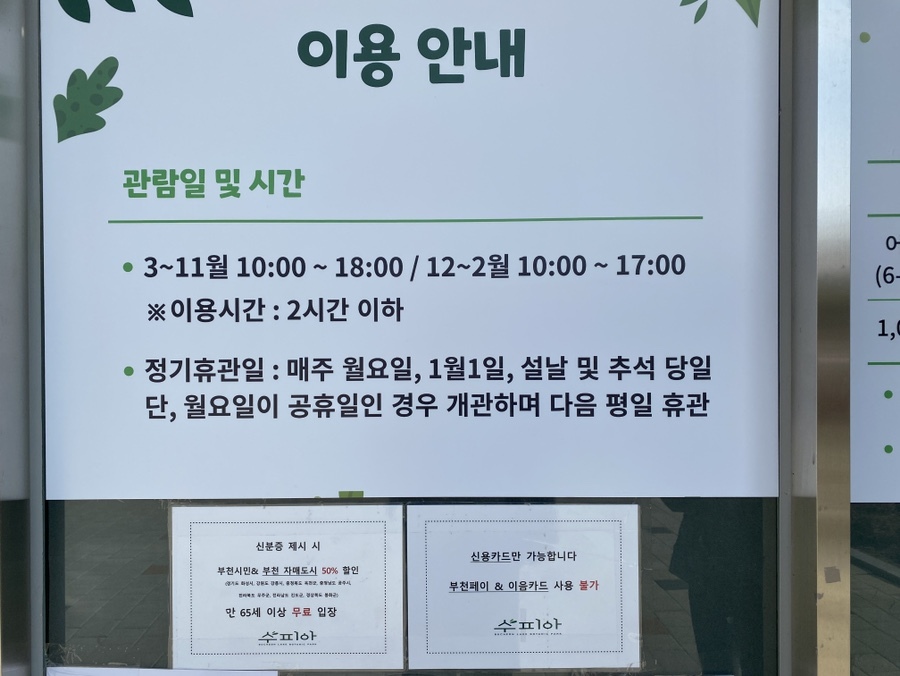 부천시민이나 자매도시(경기도 화성시, 강원도 강릉시, 충청북도 옥천군, 충청남도 공주시, 전라북도 무주군, 전라남도 진도군, 경상북도 봉화군) 시민은 50% 할인 요금이 적용됩니다.