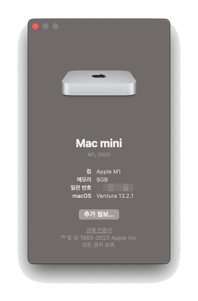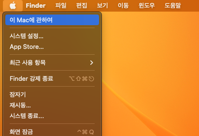 macOS 버전과 메모리 용량을 확인할 수 있습니다.
