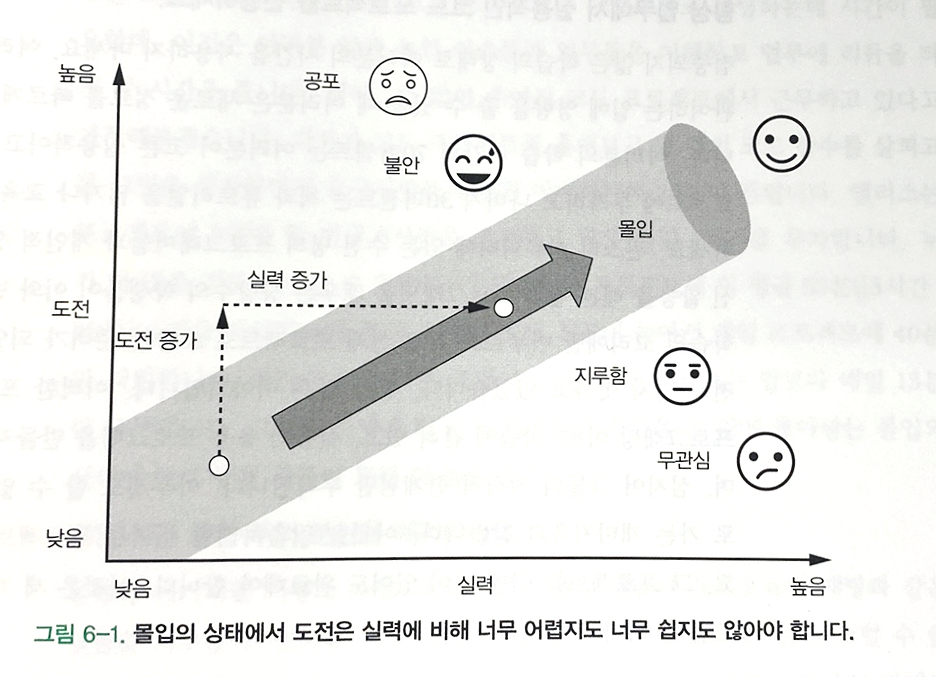 6장에서는 몰입을 통한 생산성 향상을 높이는 방법과 그 몰입에 이르는 법에 대한 팁을 배우게 됩니다.
