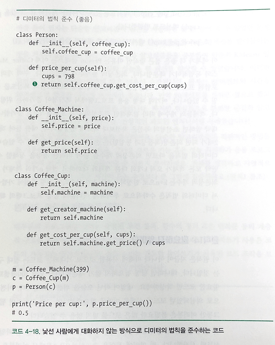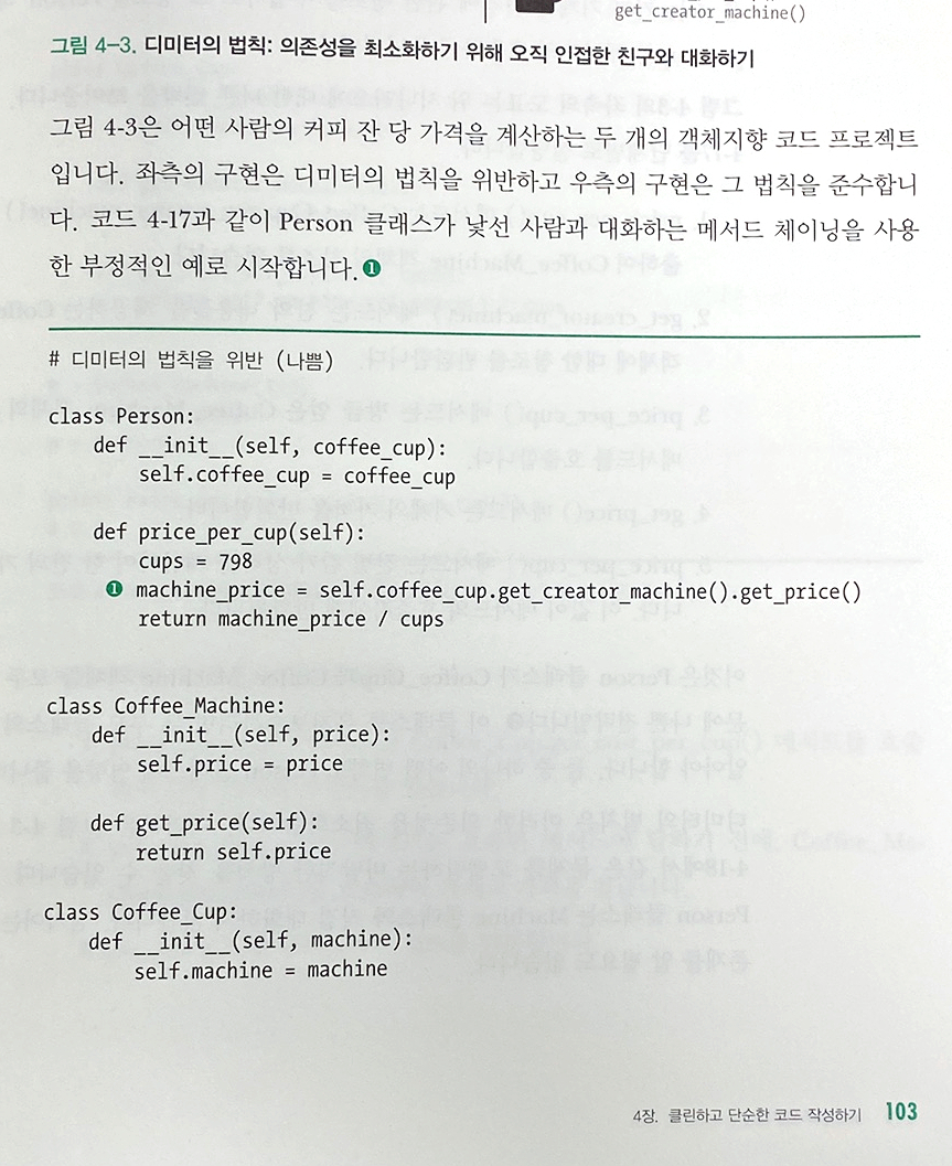 4장은 클린하고 단순한 코드를 작성하기 위한 17가지 원칙들과 구체적인 파이썬 소스를 예로 보여줍니다.