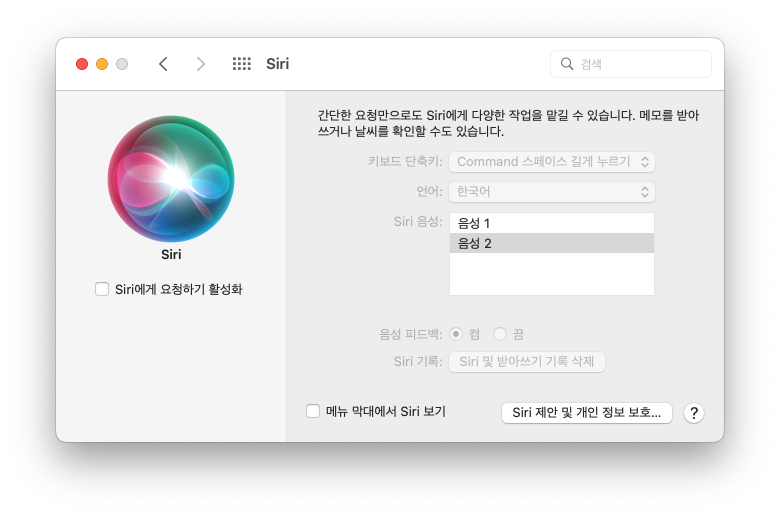 시리를 잘 사용하지 않는다면 시리도 활성화 해제하는 것을 추천합니다.