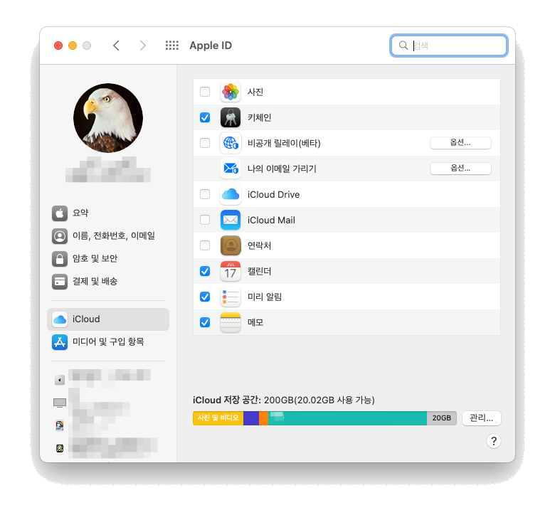 - 사진, iCloud Drive, iCloud Mail, 연락처 등 사용하지 않는 설정 끄기