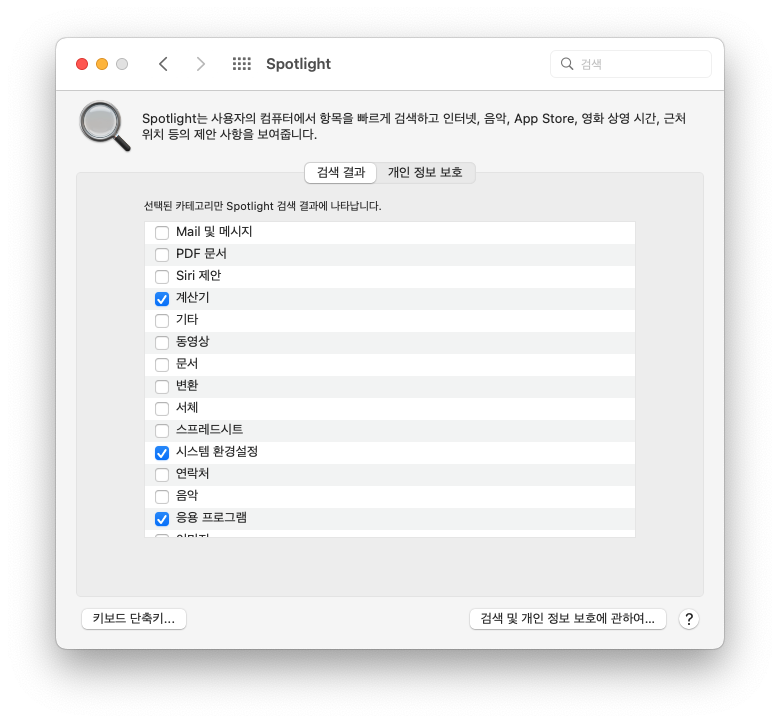 spotlight를 자주 사용하지 않는다면 검색하는 항목을 최소화하는 것이 좋습니다.