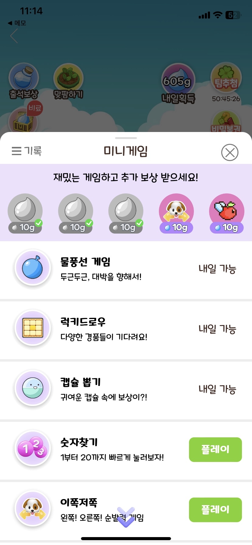 매일 매일 미니게임도 놓치지 않고 하면 좋은데요.