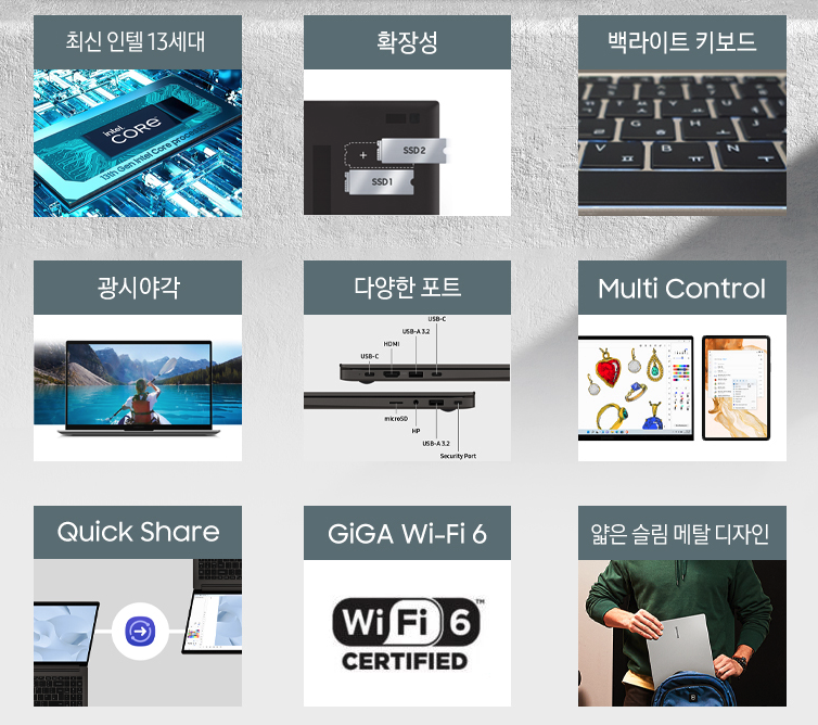 기존 갤럭시북2는 두껍고 무거워서 고려 대상이 아니었는데, 갤럭시북 3은 제 마음에 쏙들게 출시 되었네요.