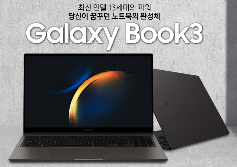갤럭시북 시리즈 중 보급형 라인으로 나온 갤럭시북3는 인텔 13세대 CPU를 탑재하고 15.6 인치의 광시야각 디스플레이와 한층 가벼워진 무게와 두께로 출시되었습니다.