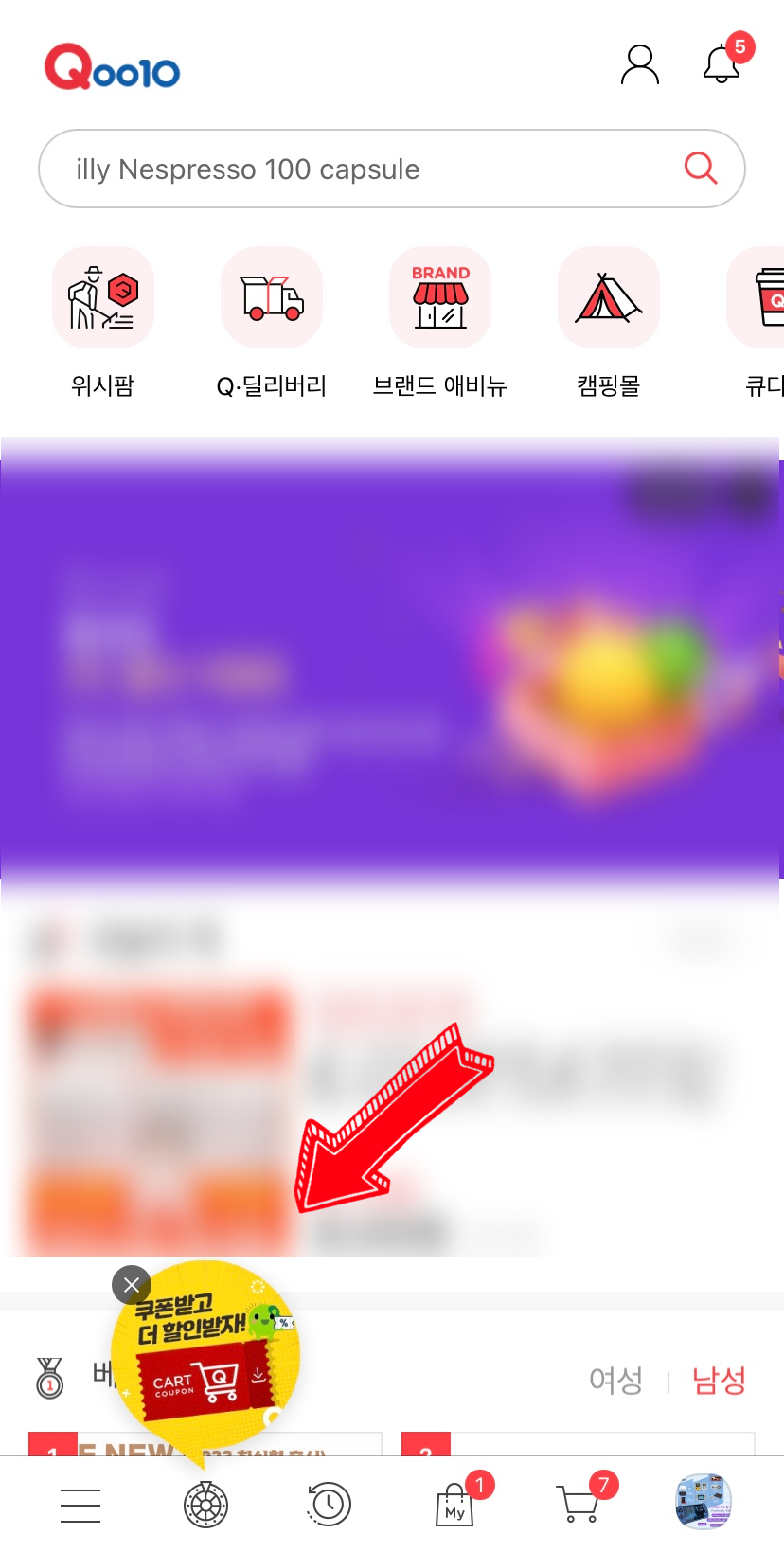큐텐 메인에서 쿠폰 링크로 이동해 룰렛 추첨을 통해 쿠폰을 발급받습니다.