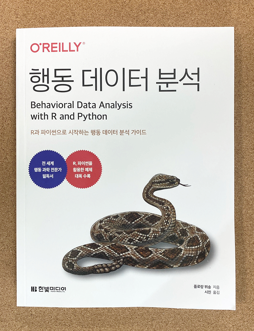 "R과 파이썬으로 시작하는 행동 데이터 분석 가이드" 라는 부제와 표지 디자인이 개발자를 위한 기술서적으로 생각했습니다.