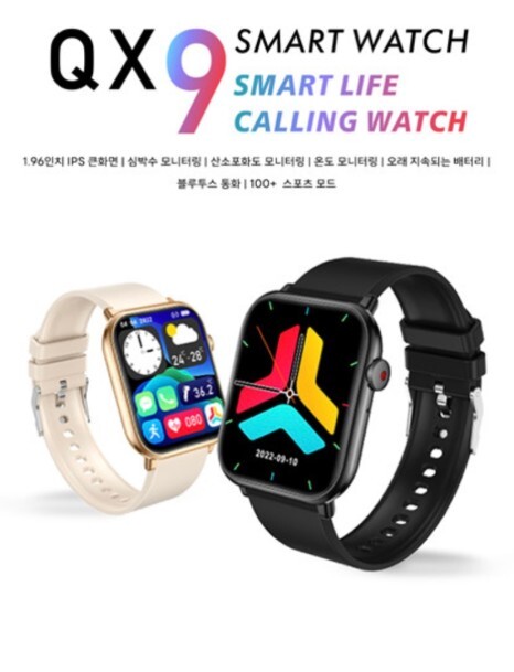[33,360원][위시팜]GloryFit QX9 스마트 워치 한글지원/스트랩 증정/1.96인치 큰화면/ IP67 방수/100+ 스포