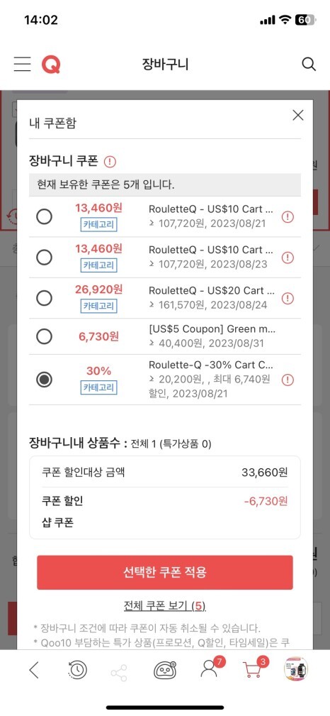 매일 1회 룰렛 찬스를 주기 때문에 자주 방문해서 룰렛으로 쿠폰도 받고 포인트도 쌓아놓으시면 주문할 때 할인 받을 수 있어요.
