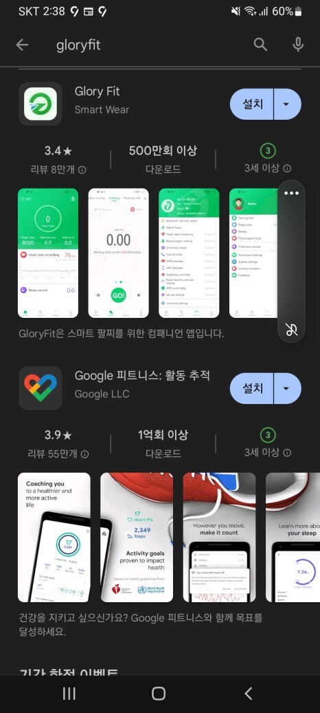 Play 스토어에서 gloryfit 앱을 다운받아 설치했구요.