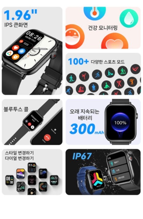 믿을 수 없는 쇼핑 찬스! [위시팜]GloryFit QX9 스마트 워치 한글지원/스트랩 증정/1.96인치 큰화면/ IP67 방수/100+ 스포츠 모드/블루투스 통화/심박수 측정:휴대폰/스마트기기싱가폴, 일본, 한국, 미국