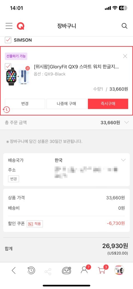 QX9 스마트워치는 큐텐에서 구입이 가능한데요.