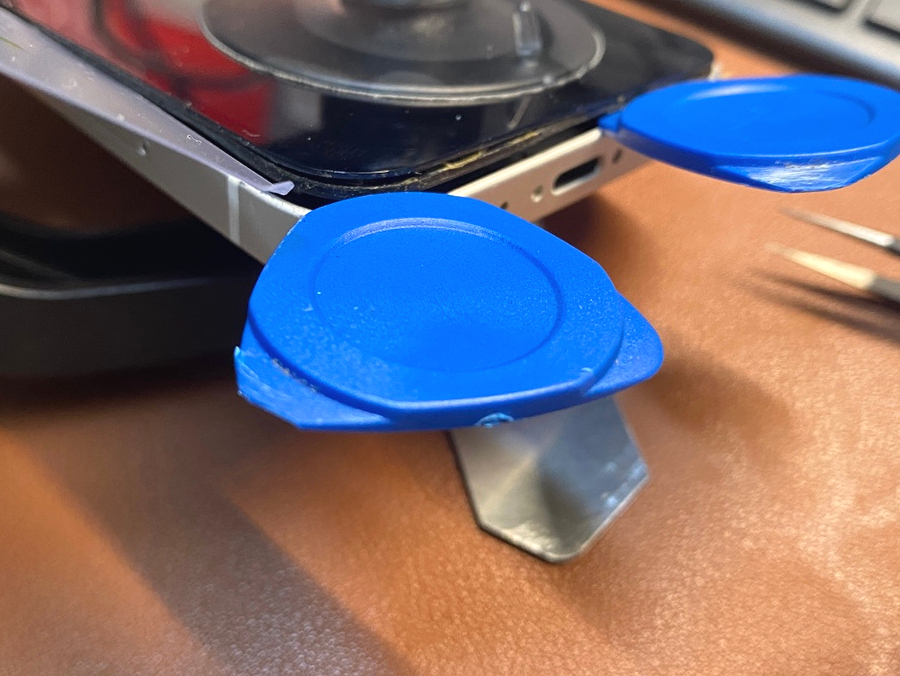 액정 하단 플라스틱까지 들어올려 플라스틱 헤라를 넣어가며 액정 분리 작업을 진행했습니다.