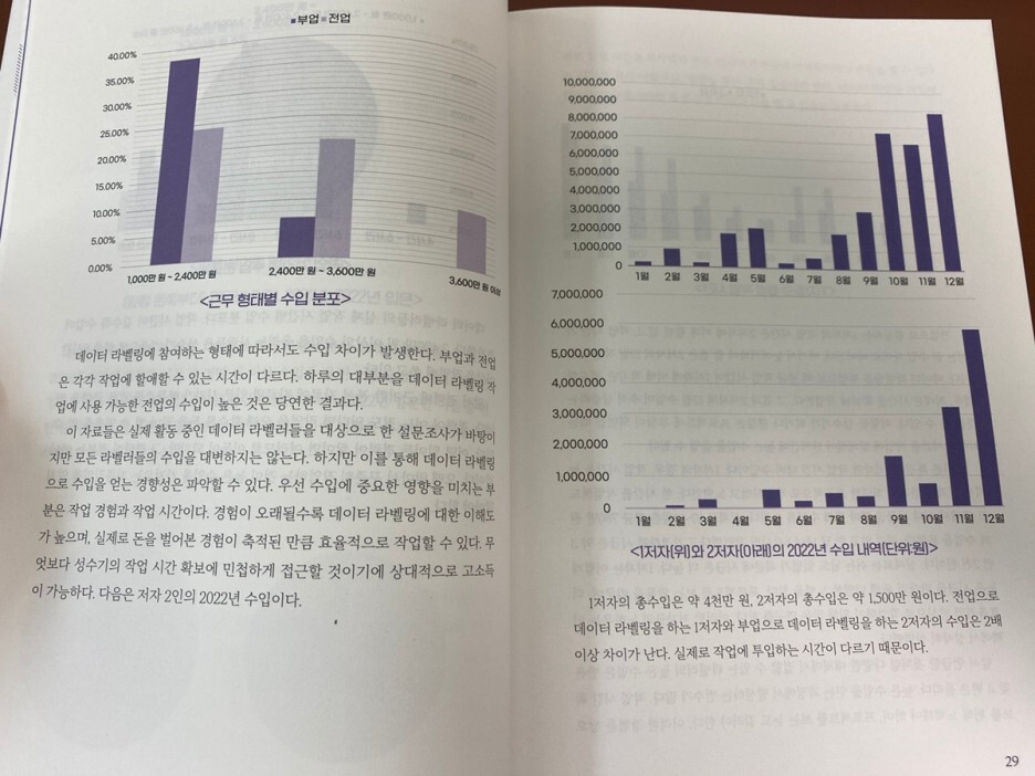 이 책에서는 데이터 라벨러 입문하는 방법과 고수입을 창출하기 위한 노하우, 그리고 저자들의 수입까지 공개하고 있습니다.