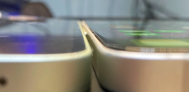 LCD는 유독 아래쪽이 더 두꺼운 것을 알 수 있습니다. 처음에는 아래만 두꺼운게 어색하고 신경이 쓰였는데 케이스 씌운 상태로 사용하다 보니 하단의 두께감이 무뎌지는 것 같아서 신경쓰이지 않았습니다.
